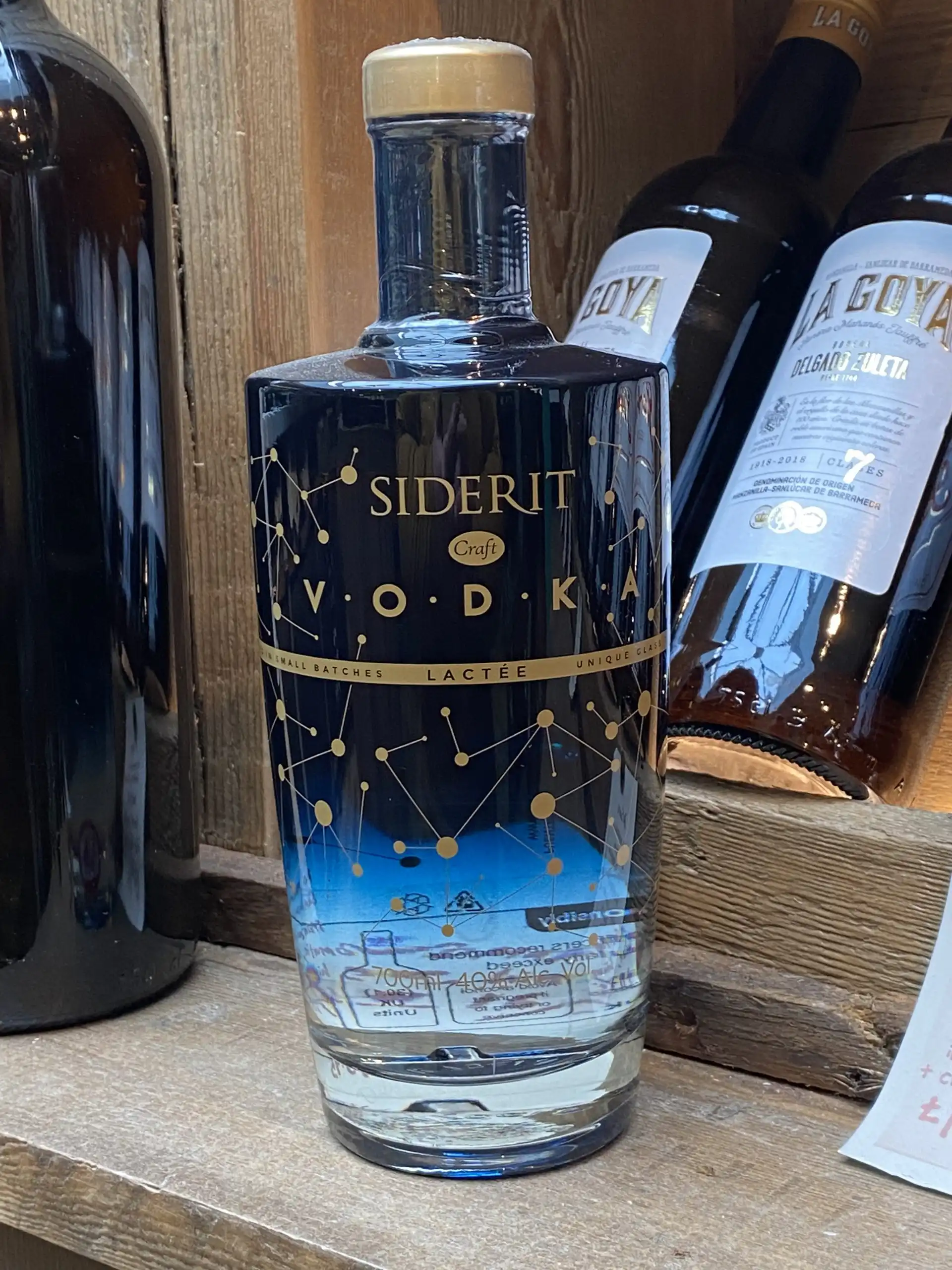 This is an ultra-premium Spanish vodka, delicately produced from the alcohol obtained from the fermentation of milk sugars in lactose, hence the name Lactee. The bottle design is inspired by the milky way often seen in Northern Spain where Vodka Siderit Lactee is produced. After five distillations, a very exclusive vodka with different taste notes is obtained which will impress the most experienced taster. Winner of a Gold Medal at the 2014 San Francisco World Spirits Competition.