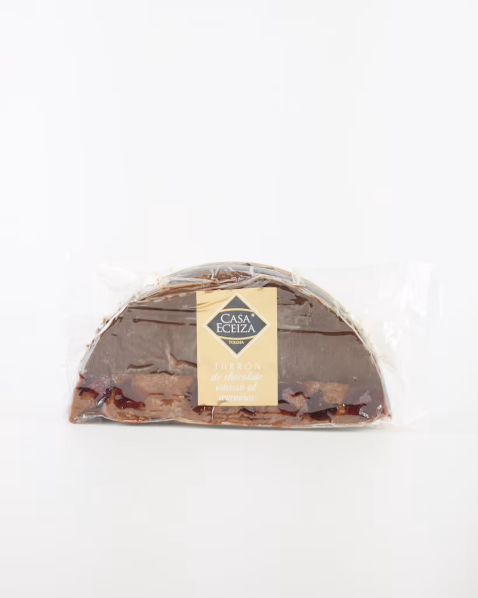 Intense dark chocolate and almond turrón with glacé cherries and armagnac. An indulgent treat to enjoy after dinner with a glass of brandy.