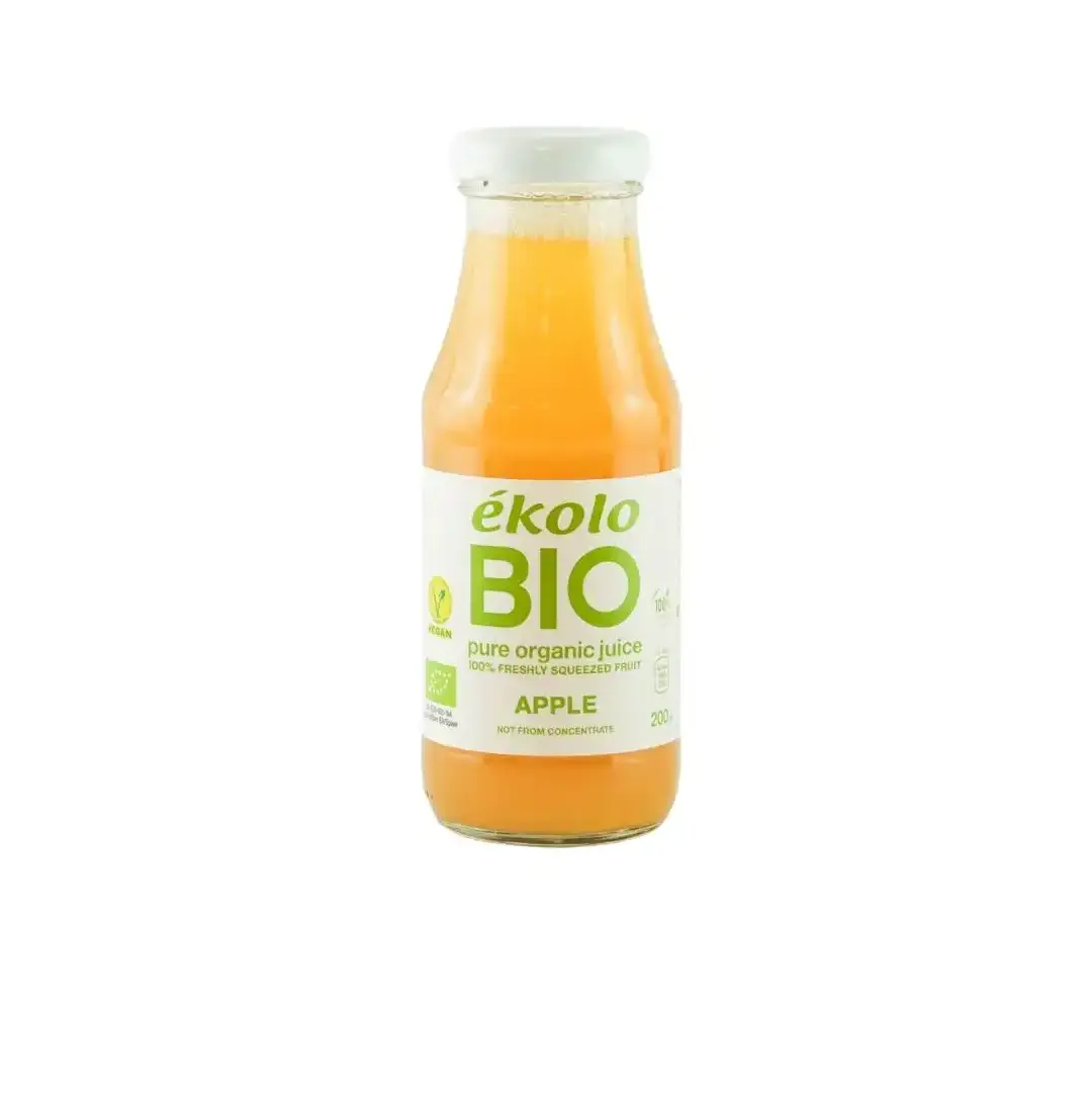 Ekolo juices are made exclusively from 100% fresh, organic fruit farms and are sorted by hand, prepared following traditional methods and made with only real fruit (no concentrate, no preservatives, no water, and no added sugar). Production cycles change with the seasons, depending on the fruit and nothing is ever imported from outside of their organic farmers from North-East Spain. This 200ml bottle of juice was made using 300g of cold pressed apples.