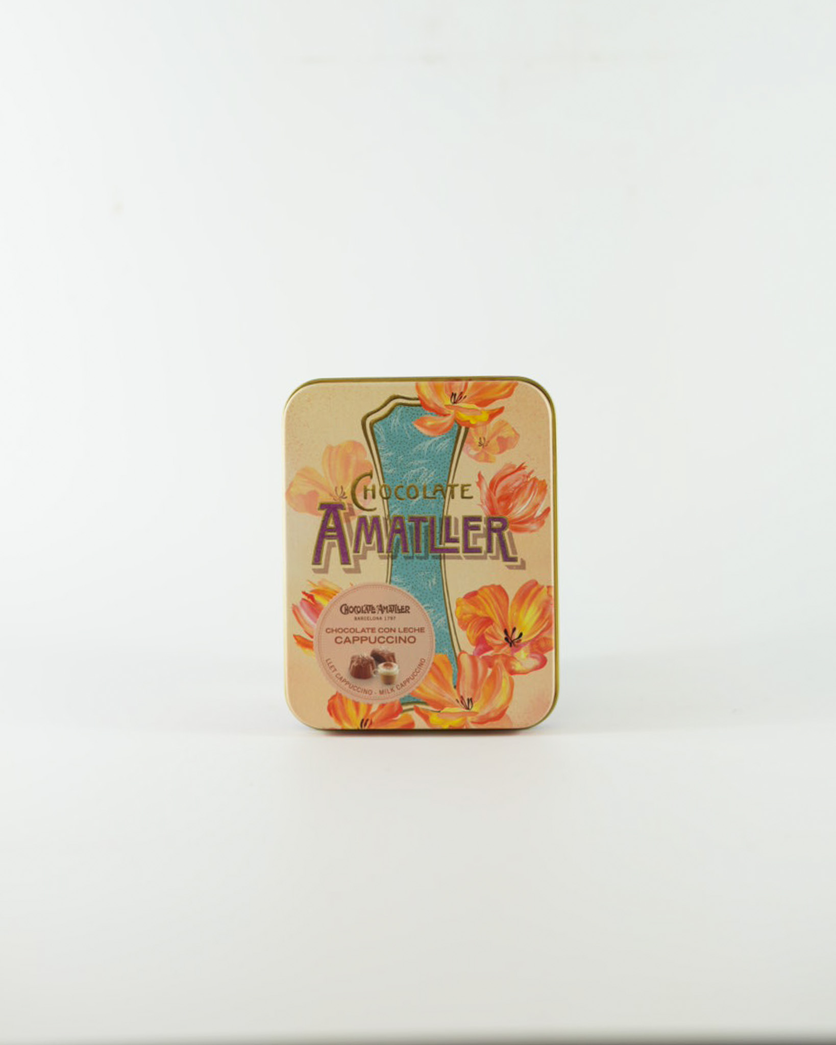 Flower shaped chocolates filled with a coffee flavoured truffle and packaged in Amatller’s classic Art Deco style tin.