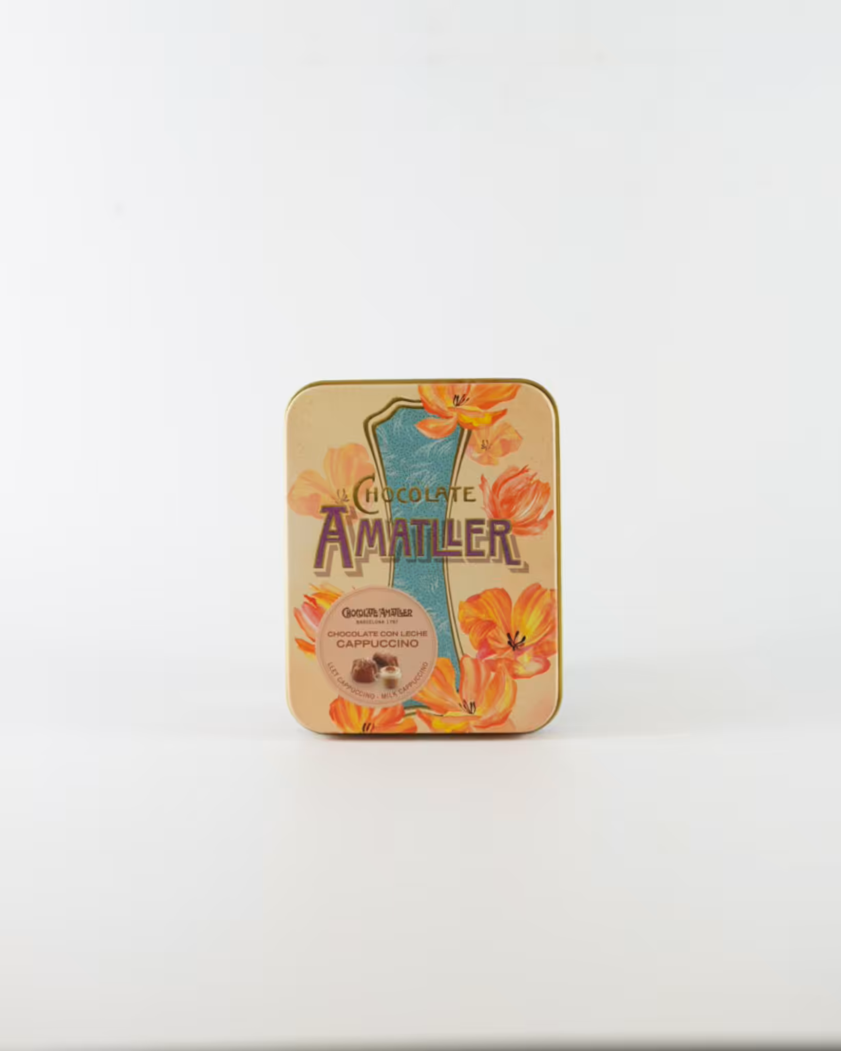 Flower shaped chocolates filled with a coffee flavoured truffle and packaged in Amatller’s classic Art Deco style tin.