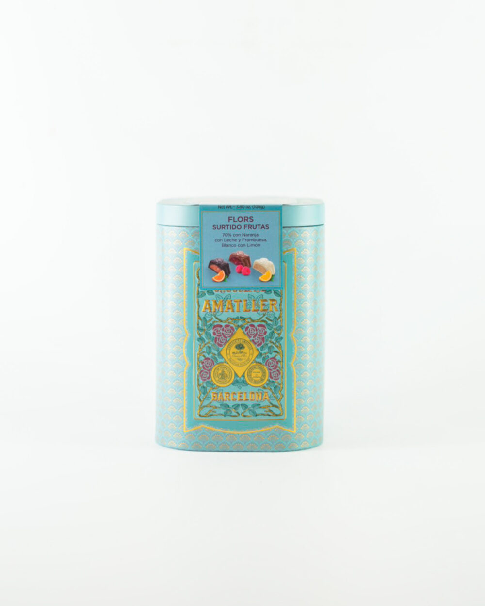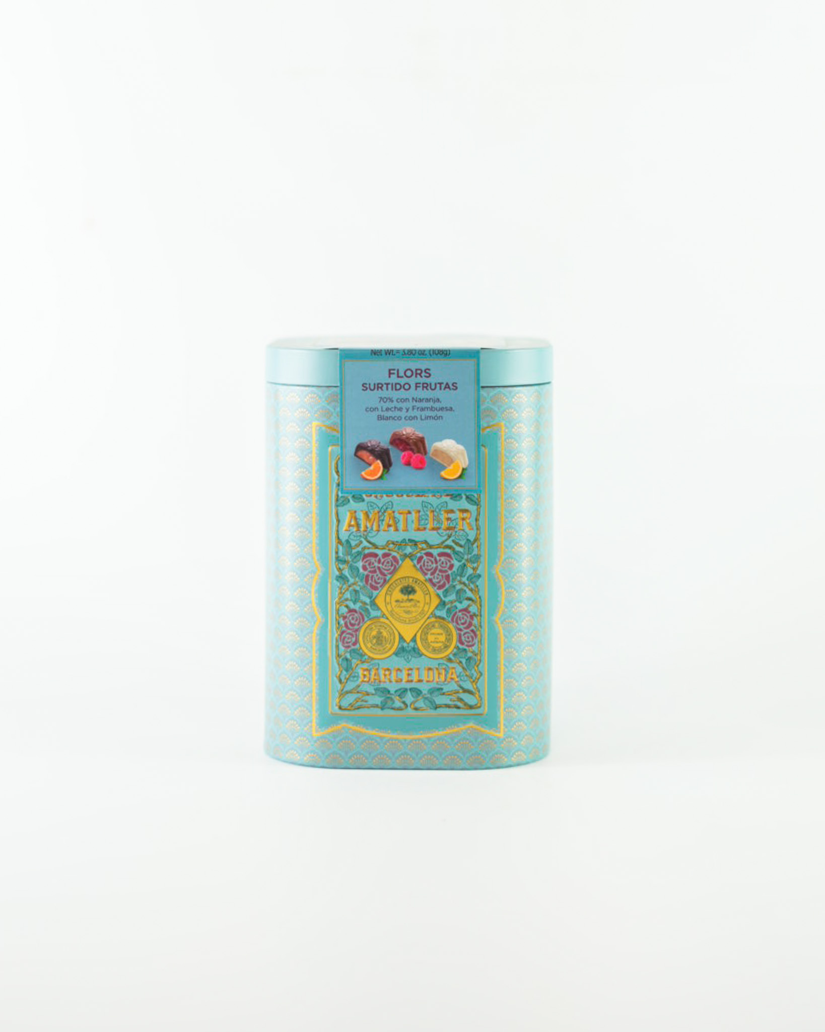 Delightful flower shaped chocolates with a fruit filling, packaged in the usual art deco style of Amatller.