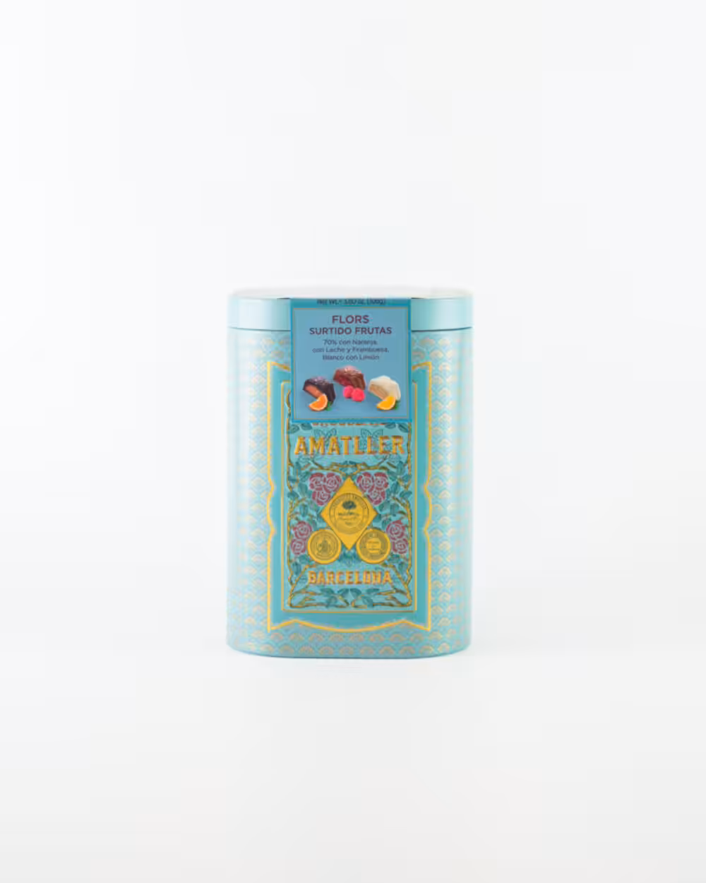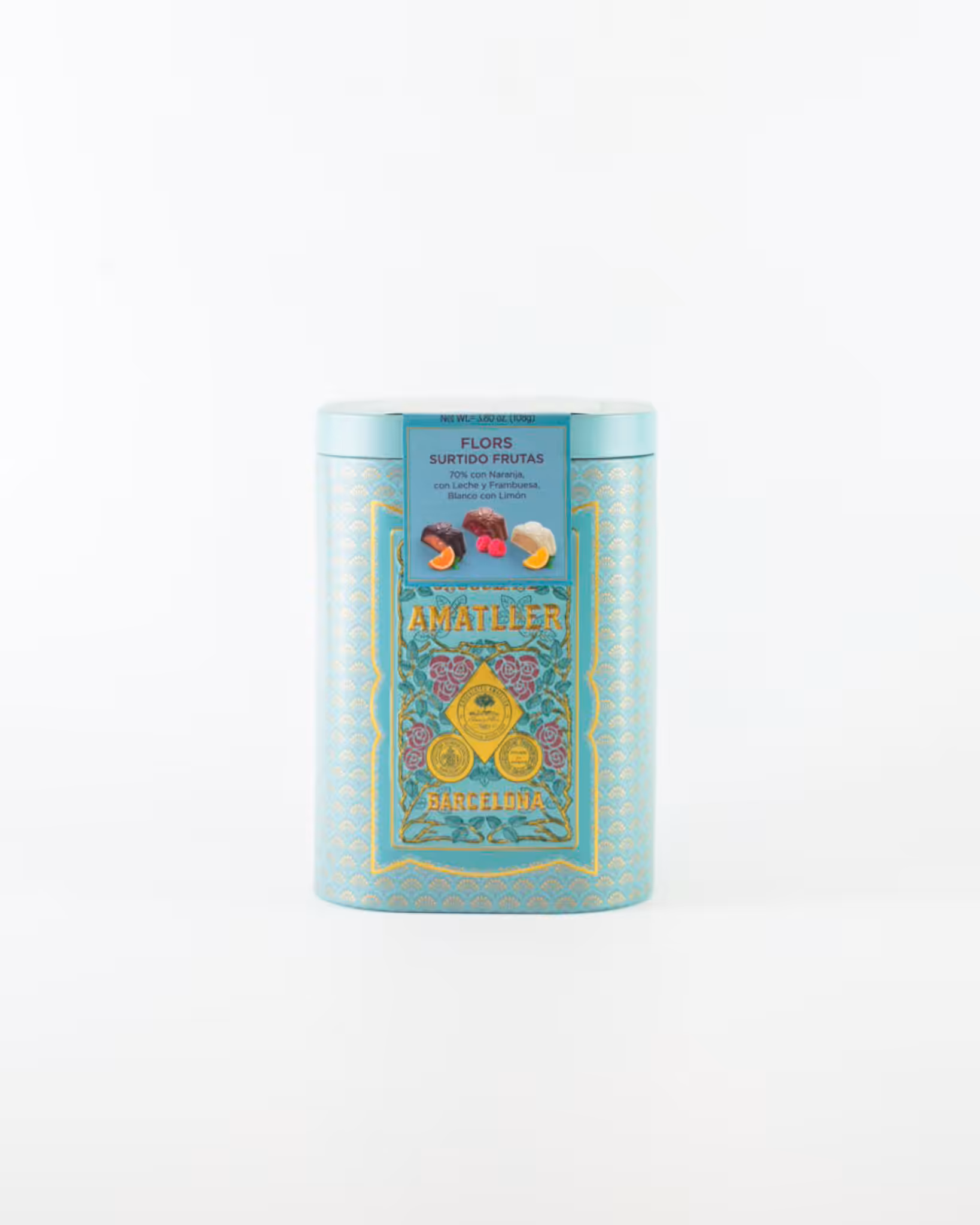 Delightful flower shaped chocolates with a fruit filling, packaged in the usual art deco style of Amatller.