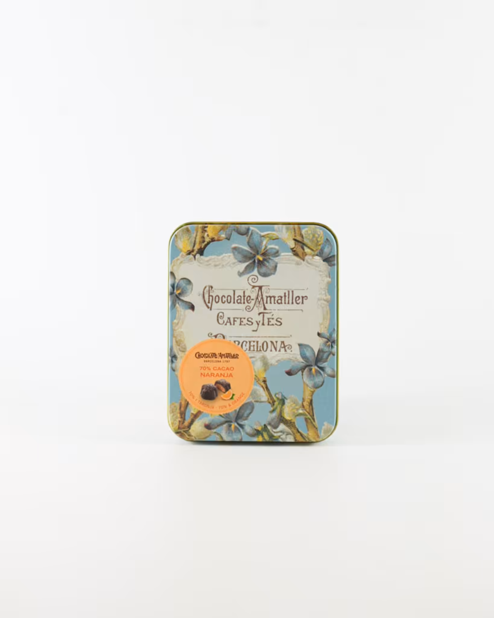 Flower shaped chocolates filled with an orange truffle filling. As always with Amatller the chocolates come packaged in a beautiful Art Deco style tin.