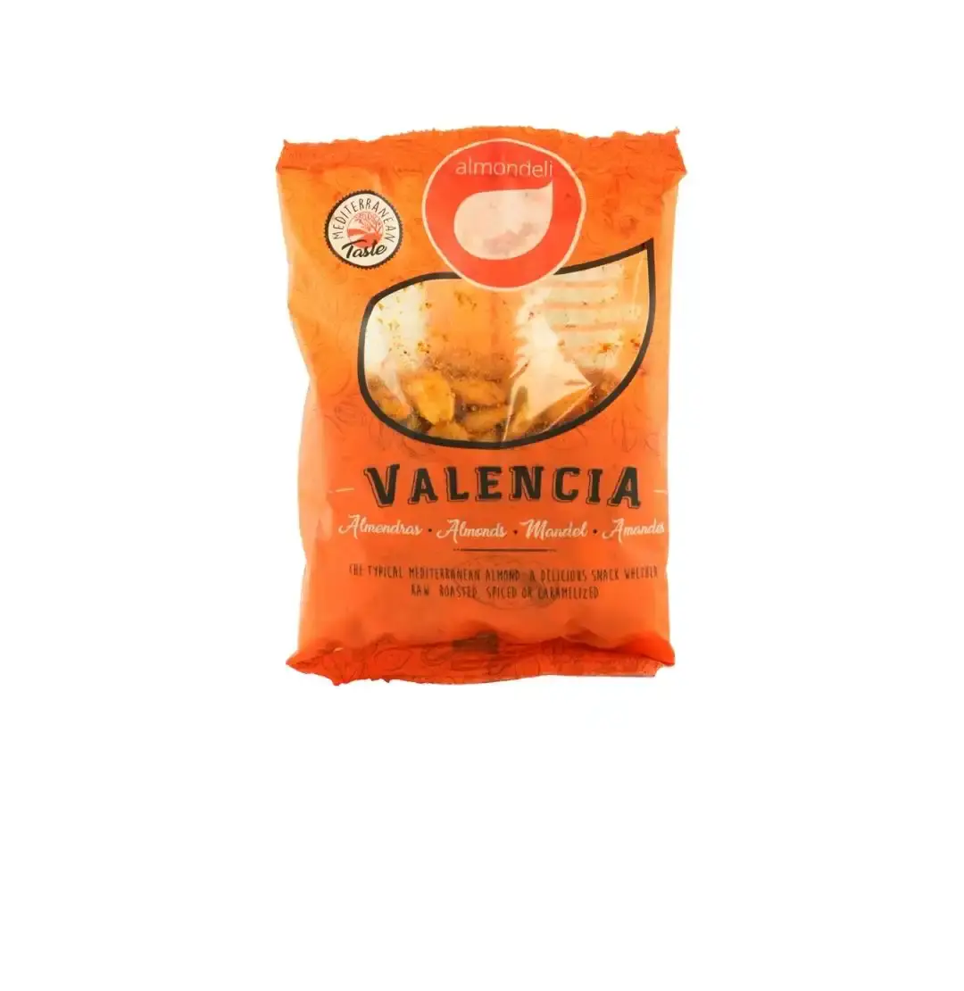 Authentic Mediterranean Valencia almonds blanched and fried with hot paprika. A great snack which goes perfectly with a cold glass of Er Boqueron.